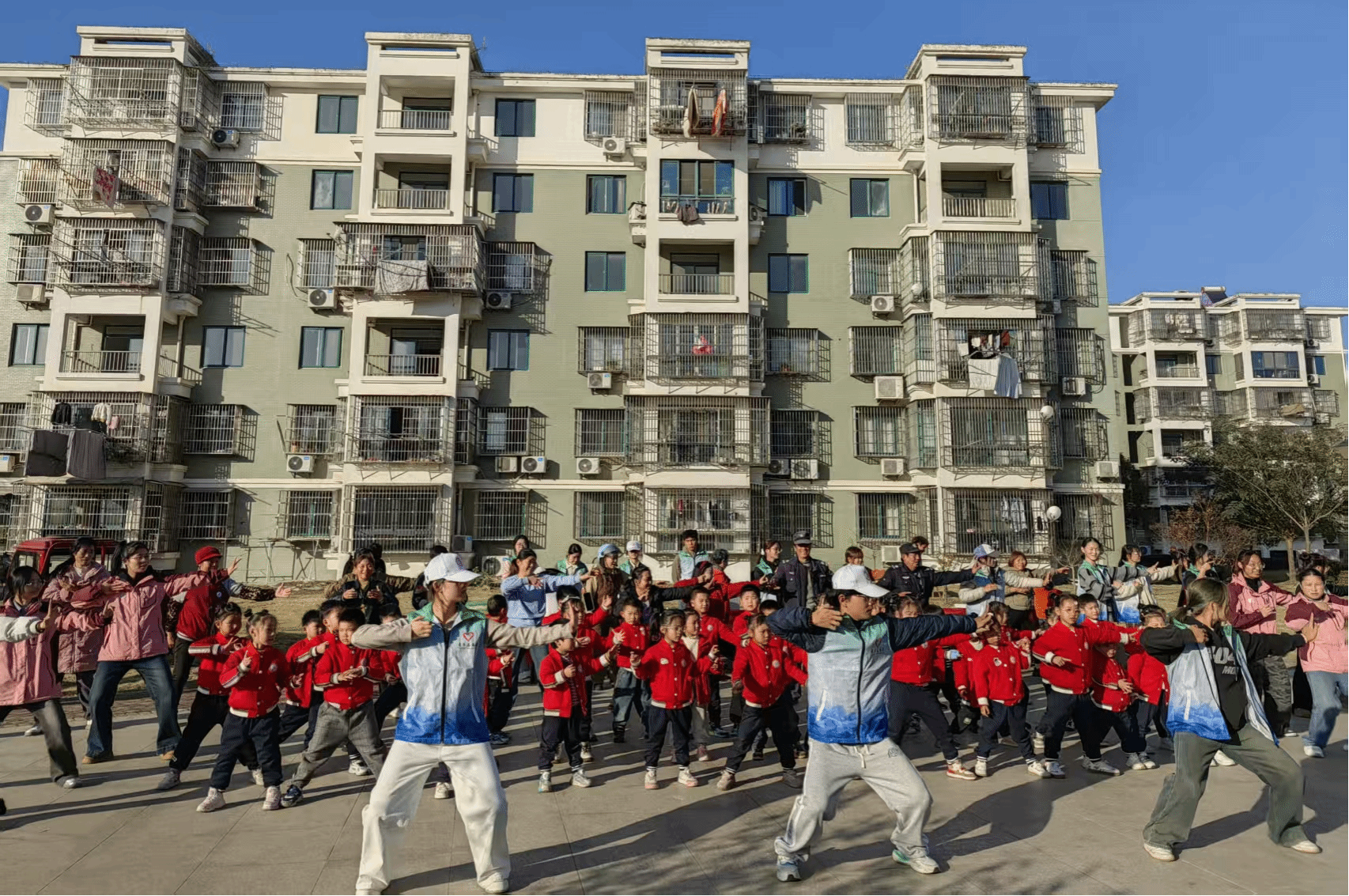 活动从幼儿园小朋友的集体舞蹈开始,随后,大学生带领孩子和老人、居民一起练习八段锦和健身操。健康运动结束后,志愿者团队根据服务对象特点迅速分组,有序开展健康服务。一组为老人们测量血压,针对血压偏高或异常的老人,结合传统体育保健与中医养生知识,给出饮食、作息及简易保健运动建议;另一组志愿者运用推拿按摩手法,为老人们舒缓筋骨不适;还有耳穴贴敷小组,为居民仔细探查耳穴,讲解耳穴对身体的保健作用;艾灸小组点燃艾条,将艾香和