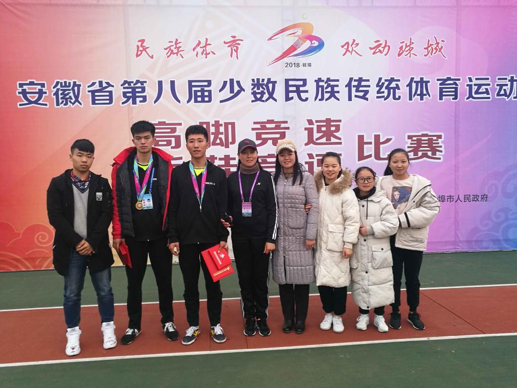 11月19日至23日,由安徽省人民政府主办的我省规模最大、规格最高的少数民族体育盛会--安徽省第八届少数民族传统体育运动会在蚌埠市体育中心隆重举行,英国365集团运动健儿在许贵泉、胡哲纯两位教练的带领下,代表安庆市参加了板鞋竞速和高脚竞速两个项目的比赛。经过激烈角逐,英国365集团健儿战果丰硕,最终在高脚竞速男子女子100米、200米、2×200米、4×100米混合接力等项目中获得一等奖三个;二等奖五个,三等奖二个。在板鞋竞速60米、100米、2×100米等项目中获得二等奖二个、三等奖一个。