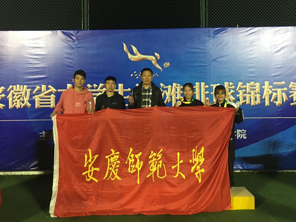 10月8日—12日,由安徽省教育厅主办的2018年安徽省大学生沙滩排球锦标赛在巢湖学院举行。我校沙滩排球队在邓龙老师带领下,分别参加了体育专业男子丙组和女子丙组两项比赛,最终荣获女子丙组一等奖(第二名)、男子丙组二等奖(第四名)以及 “优秀组织奖”和男子丙组“体育道德风尚奖”。