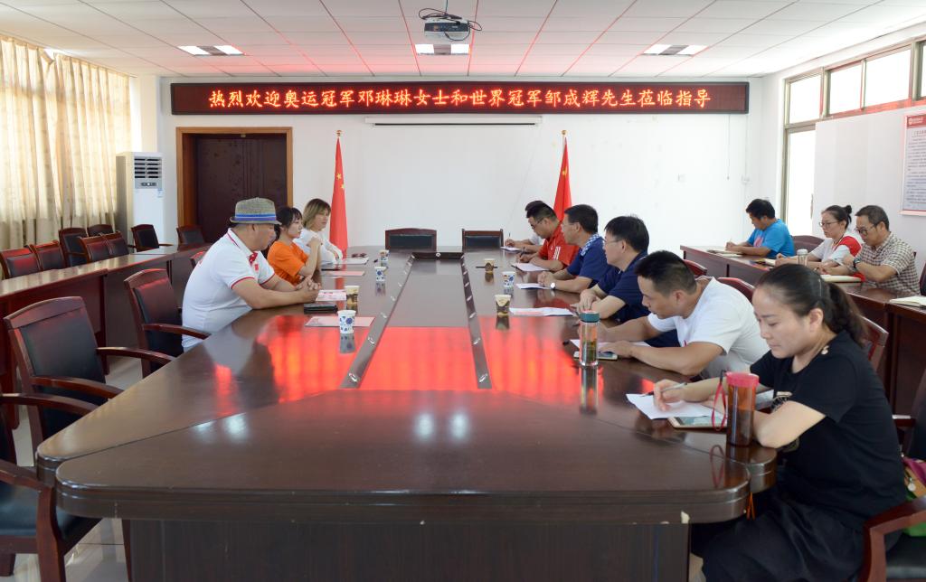 7月26日下午,体操奥运冠军邓琳琳、技巧世界冠军邹成辉在安徽省啦啦操协会秘书长胡彩红等陪同下来我校考察交流。党委副书记、校长闵永新会见了邓琳琳一行;校党委常委、副校长汪时珍与邓琳琳一行进行座谈交流,英国上市公司365党政主要负责同志、部分专业教师参加座谈。