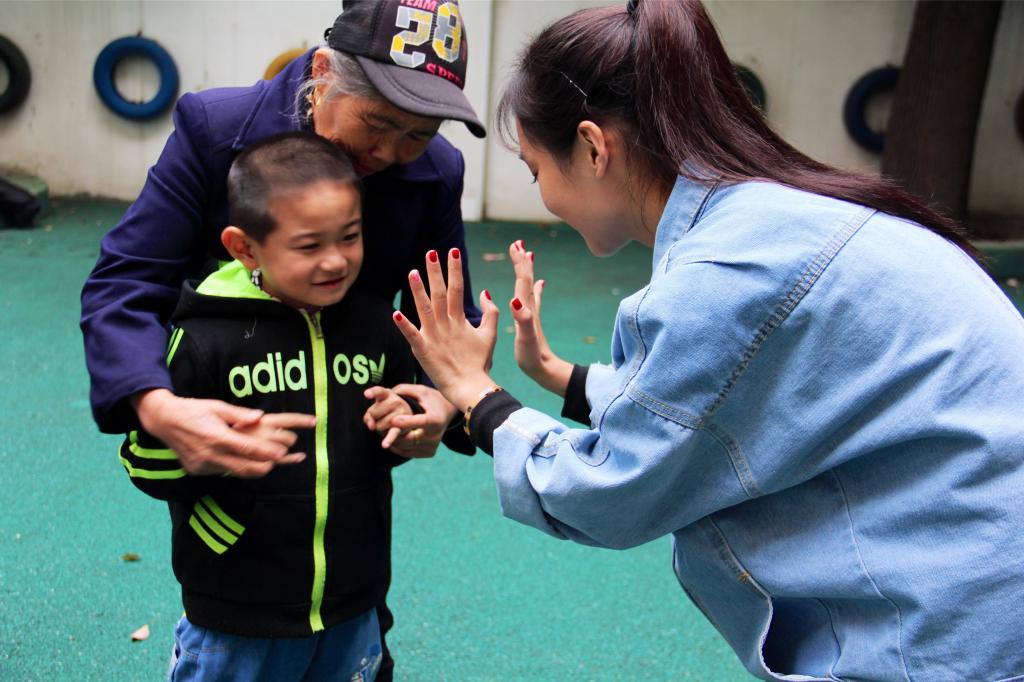 志愿者们主动跟孩子一起互动,鼓励称赞他们,拉近距离,得到孩子们积极的配合。