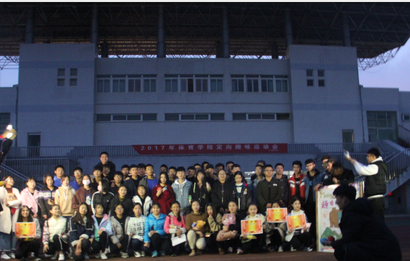 一整个下午的活动到天黑时才接近尾声,最终,2017级体教1班勇夺本次定向趣味运动会的冠军,2017级体表2班和休体1班获得亚军,2017级运动康复1班、体教2班和体教3班获得季军。在热烈的掌声中,学生会主席团给获奖团队颁发证书和奖品,最后所有参赛人员和工作人员一起合影留念。