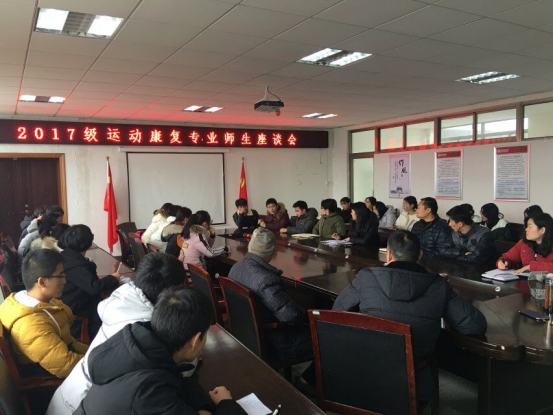 1月5日在体育馆会议室召开2017级运动康复专业师生座谈会。会议由副院长章翔主持,党总支副书记周多奇、运动康复专业相关教师及2017级运动康复专业全体学生参加会议。