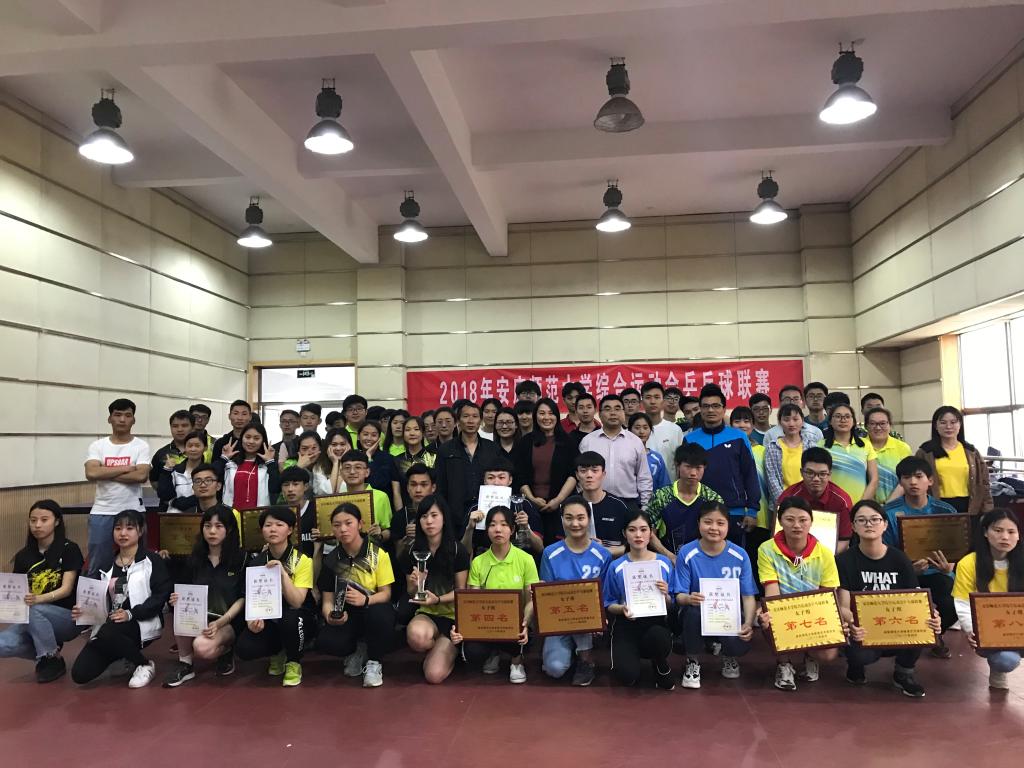 4月23-26日,校综合运动会乒乓球联赛在龙山校区体育馆举行。经过四天紧张、激烈、精彩的角逐,经济与管理学院、计算机与信息学院、物理与电气工程学院分获男子团体前三名;外国语学院、资源环境学院、文学院获得女子团体前三名。经济与管理学院的吴文浩和夏宇轩同学、计算机与信息学院的王永旭同学获得男子单打前三名;物理与电气工程学院的杨雪姣、文学院的吴婧棣、外国语学院的汪晓芳同学获得女子单打前三名。