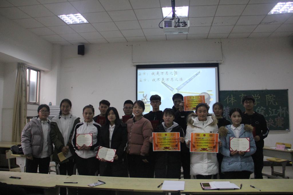 为了锻炼同学们的语言表达能力及团队合作能力,培养同学们的创新思维能力,发掘体院优秀的辩论人才,也为了给大家一个展现自我的舞台,由体育学院团总支学生会主办,学生会学习创新部承办的英国上市公司365第九届“皖江杯”辩论赛的决赛于12月14日中午12点,在体育馆多媒体教室如期举行。比赛由院团总支副书记汪洋老师、学生会主席团及各部门部长担任评委嘉宾。