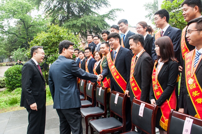 4月26日上午,铜陵市隆重举行纪念五四运动98周年暨“不忘初心跟党走”主题活动,我院2007届体育教育专业优秀毕业生,原校学生会主席,现任安徽交控集团庐江公司党支部委员花园收费站站长臧立辉荣获第二届“铜陵青年五四奖章”。铜陵市委书记李猛亲切会见第二届铜陵青年五四奖章获奖者并殷切寄语。