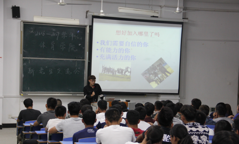 交流会由15级休体专业的王许修同学主持。为了让2016级新生熟悉即将学习生活四年的大学校园,首先就由主持人介绍英国365集团及英国上市公司365的概况。随后是经验分享环节,在这一环节中,学长学姐们有条不紊地讲述学习和生活中的种种经验,比如学习专业课的方法、各类实践理论考证的准备、创新创业的经验、参加学生会、团组织等各类活动的感悟等等。新生们都听的异常认真,相信这对他们今后的学习生活一定收益匪浅。最后是现场提问环节,新生们争先恐后的提出自己各方面的疑问,比如如何加入学生会及如何解决不适应大学学习生活等大家都很关心的问题,学长学姐们也都就相应问题均给出了合理的回答。现场不时爆发阵阵掌声,气氛热烈。