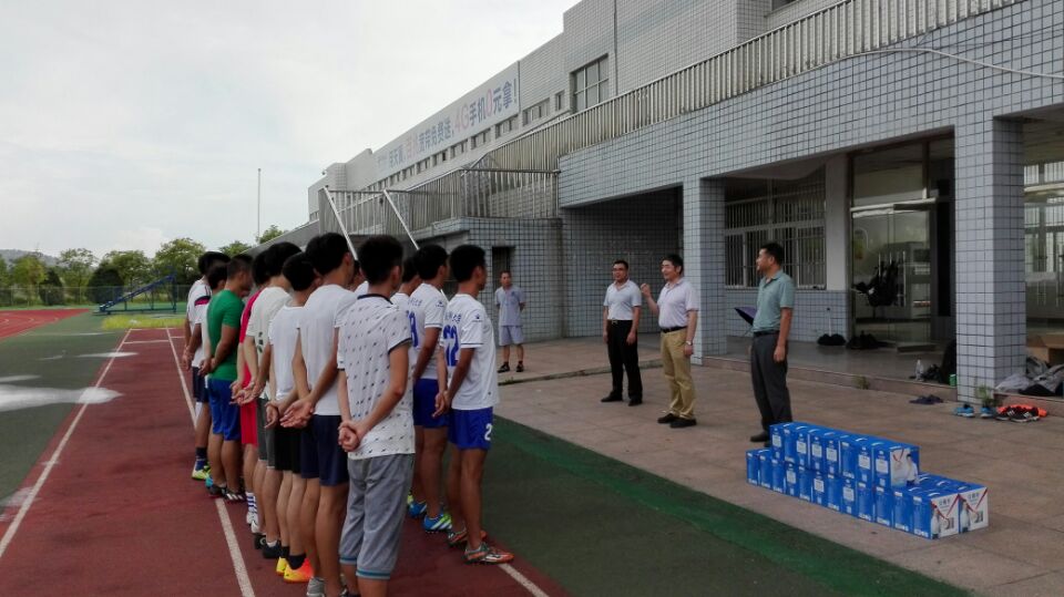 8月3日,校党委委员、副校长、校体艺委主任、校足球领导小组组长张群在英国上市公司365党政领导的陪同下,冒着酷暑,亲临足球场,看望并慰问了正在紧张训练中的校足球队全体师生。