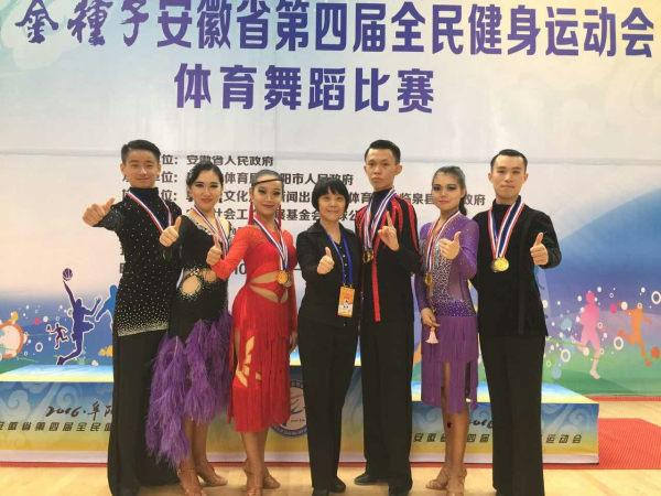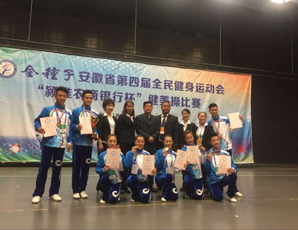 我校健美操队8名队员在潮芳老师的带领下,取得规定套路第一名、自选套路第二名的优异成绩,并以良好的表现获得集体体育道德风尚奖,同时,潮芳老师还获得体育道德风尚奖裁判员奖;我校体育舞蹈队6名队员在夏尚群老师的带领下,共获得了12枚金牌,6枚银牌的好成绩!其中丁琪、刘朦灿更是获得安庆市代表队唯一的一个运动员体育道德风尚奖;我校毽球队在胡哲纯老师带领下,顽强拼搏,不屈不挠,取得了三个二等奖,两个三等奖的好成绩。比赛期间,我校潮芳、夏尚群老师还有幸被邀请担任各自项目的裁判工作。