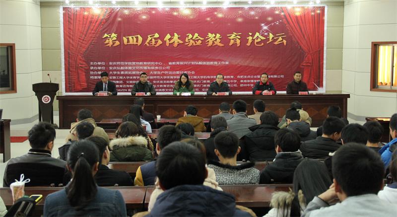 2016年1月9日,第四届体验教育论坛在校行政楼一楼会议室隆重举行, 校学生处、教务处、团委、传媒学院等单位的领导老师参加了此次会议。论坛汇集了国内多名体验教育行业知名学者、中小学校长、培训机构负责人及我校有志于从事体验教育的学生约200人。论坛由安庆师范学院英国上市公司365“营地教育研究中心”和省高等教育振兴计划“弘毅体验教育名师工作室”共同主办,英国上市公司365营地研究中心主任张书军老师主持。