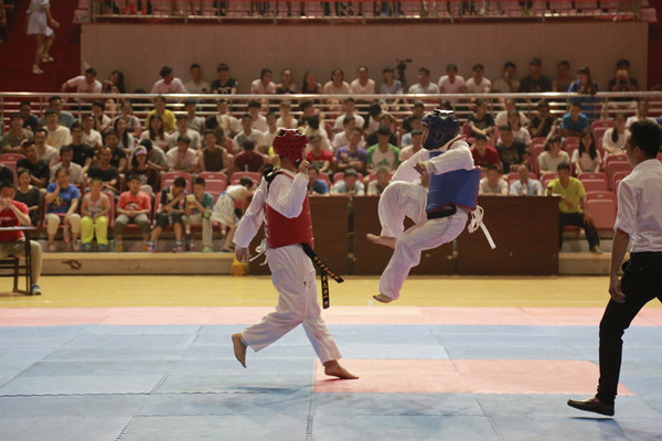带领2013级跆拳道专选班的张书军表示以前学生都是自己进行比赛,而这是第一届邀请观众并由学生组织的跆拳道毕业比赛。他们训练得都很认真,能力也很强,我觉得他们可以办这样一场比赛就鼓励他们了,事实证明结果很棒!”2013级跆拳道班班长、比赛负责人董明汗说:“举办这样的比赛,不仅是为了给三年的一个圆满的答卷,更是为了能创造出更好的跆拳道氛围,让感兴趣的人都能学习到跆拳道。(文/学生记者 肖奇琳 图/学生记者 黄振君)