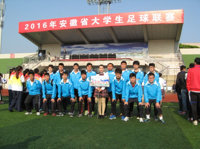 5月19日至5月28日,由安徽省教育厅主办的2016年安徽省大学生足球比赛在蚌埠医学院、安徽财经大学、安徽电子信息职业技术学院三所学校同时举行。我校分别派出了由黄安泉、黄庆两位老师为教练的男子甲组足球队,由项和平、陈国元两位老师为教练的男子丙组足球队以及由孙明运、陈诚两位老师为教练的女子丙组足球队共计2个组别三支队伍参加了此次比赛。最终经过激烈竞争,我校男子足球队获得丙组季军。我校女子足球队在首次组队参加省级比赛的情况下也获得了丙组第四名。