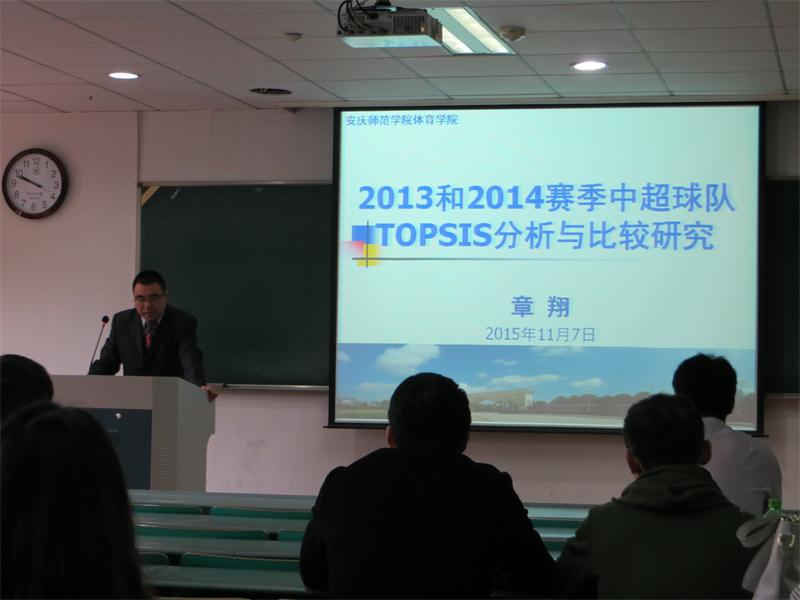 本次大会交流形式为专题报告、迷你报告、墙报交流和书面交流。根据大会安排,10月8日上午,章翔副院长在大会论坛上作了题目为《2013和2014赛季中超球队TOPSIS分析与比较研究》的专题报告。