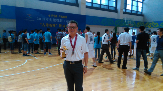 8月27日—9月1日,由安徽省总工会和安徽省体育局联合主办,由安徽省球类运动管理中心、安徽省篮球协会和合肥学院共同承办的2015年安徽省职工运动会“古井贡杯”篮球比赛在合肥学院体育馆举行,受安庆市总工会委托,我校英国上市公司365宣暄老师担任了安庆市篮球代表队的主教练。在宣暄老师的指导下安庆市篮球健儿发挥极其出色,取得了可喜成绩,最终夺得了本届比赛的第三名。