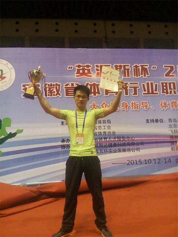 10月12日到14日, 2015年国家职业资格健身教练技能大赛在合肥省体育馆举行,我院学生张笑笑、高健、吴冠豪最终获得两个个人第二,团体第二的好成绩,其中高健、吴冠豪直接晋升国家职业资格高级健身教练资格。