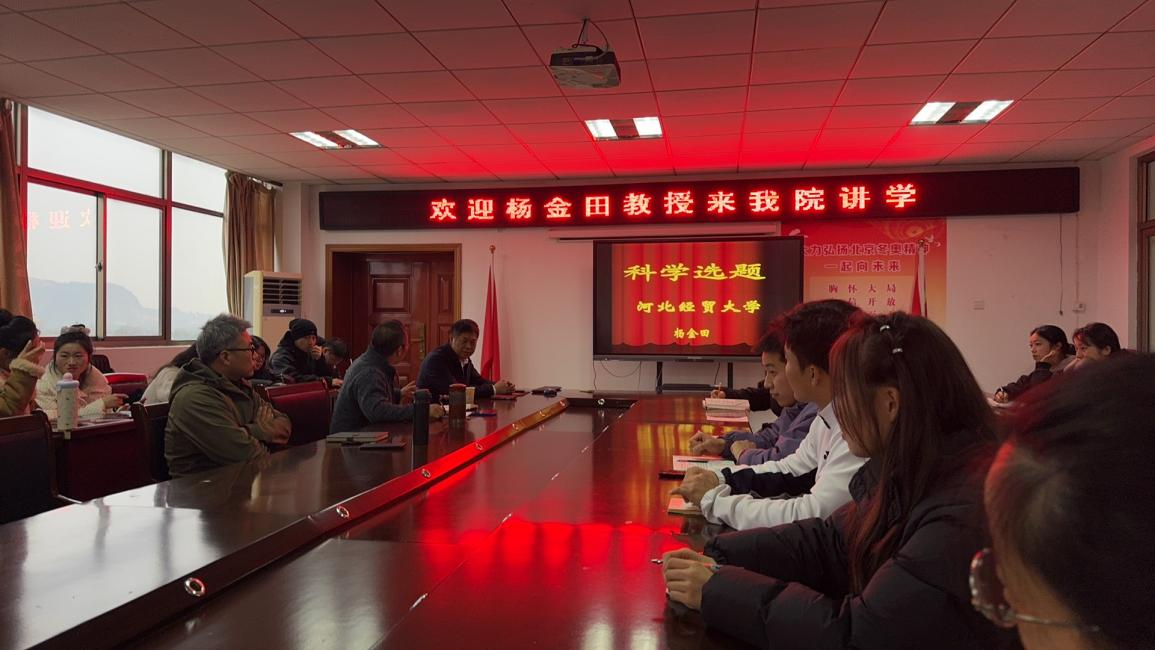 12月12日,河北经贸大学杨金田教授应邀做客英国上市公司365“行健讲堂·大家谈”,以“体育学科科学选题”为主题召开专题报告会。英国上市公司365副院长孙明运主持报告会,副院长王晓东、师生代表共同聆听这场学术讲座。