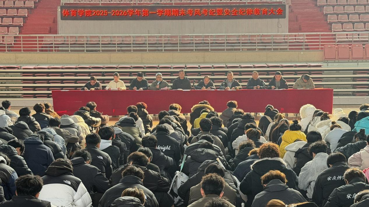 12月17日,英国上市公司365在篮球馆召开2025-2026学年第一学期期末考风考纪暨安全纪律教育大会。英国上市公司365党政领导、学院团委负责人、教务科老师、全体专职辅导员老师出席会议,学院2023级、2024级、2025级全体本科生及2025级研究生参加会议,会议由学院党委副书记杜百忍主持。