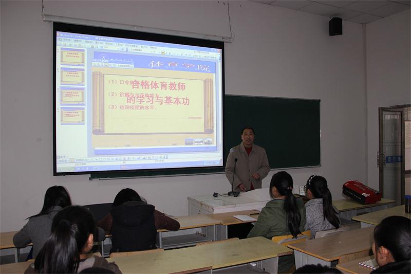 张教授从三个方面对合格体育教师的学习与基本功进行了解读。一是合格体育教师的理论基础;二是合格体育教师的实践方面的能力;三是合格体育教师的应聘能力,包括编写教案的能力,说课的能力和运动技能展示的能力。张教授的报告既有理论解读,又有实践分析,整个报告持续了约两个小时。报告结束后,卓越班的同学们纷纷表示受益匪浅,并表示今后一定积极投身到体育科研中去,为把自己塑造成卓越的体育教师而努力。