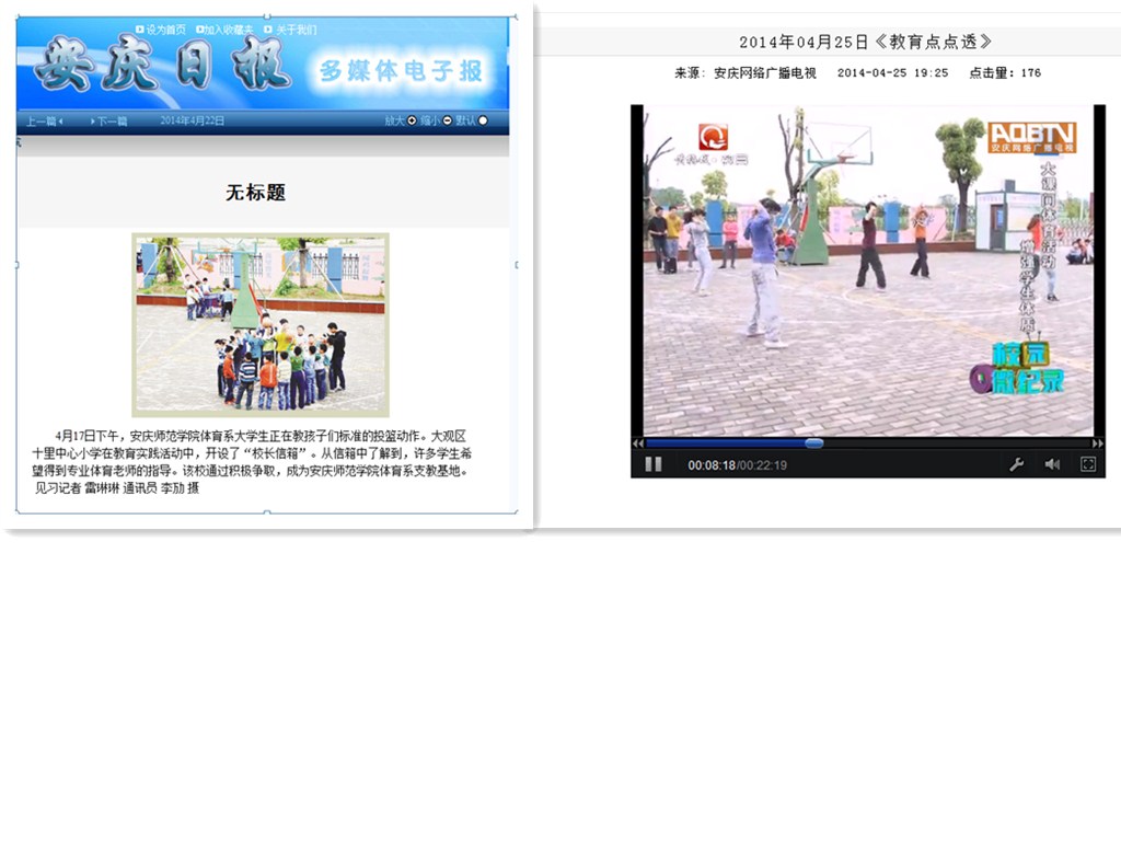本次活动不仅为英国上市公司365学生教学提供了一个良好的平台,增强了我院学生的课堂教学能力;也让小学生们深刻感受到了体育活动的无限乐趣与魅力,让他们在学习期间得到了充分的体育锻炼,培养了小学生综合实践课程意识。此次活动受到了安庆市十里中心小学师生们的一致认可与肯定。同时本次活动在安庆日报以及安庆教育网均被宣传报道,也由安庆教育“安庆教育点点透”栏目全程录制报道。(张强)http://vod.aqbtv.cn/2014-04/25/cms248917article.shtml