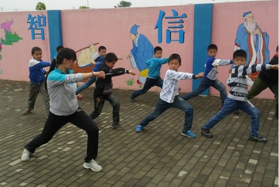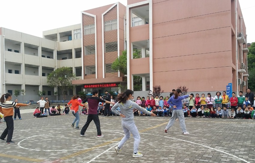 首先,由我院学生向十里中心小学的师生们做了精彩健美操、武术和篮球的才艺展示,博得阵阵掌声。才艺展示结束后,不同专选的学生对小学生们进行分组,分别进行了武术、健美操与篮球的系统的教学。学生们在教学中表现的十分认真和有耐心,不仅亲身展示示范,并且还手把手的帮助孩子们改正动作;孩子们在学习中也十分的专注,不时的向支教的同学请教提问。在整个教学过程中,支教的同学们教的认真负责,孩子们也学的很快乐。整个义务支教活动,在轻松和谐的气氛中圆满结束。
