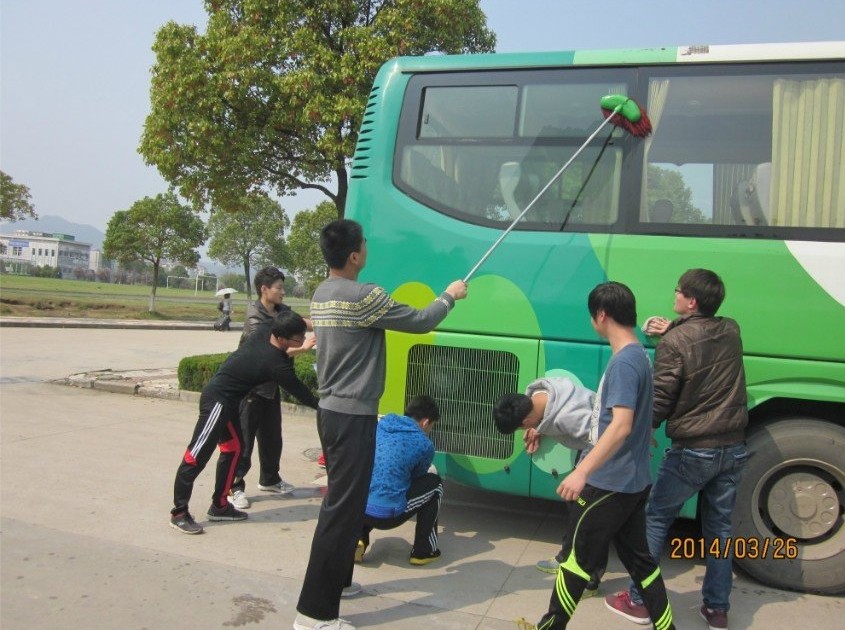 3月26日,体育教育专业2012级4班和5班团支部组织开展了“我爱我校,校车美容”主题团日活动。他们在校后期集团校车师傅的帮助下,对校车进行全面美容,并且做好校车内外的清理工作。
