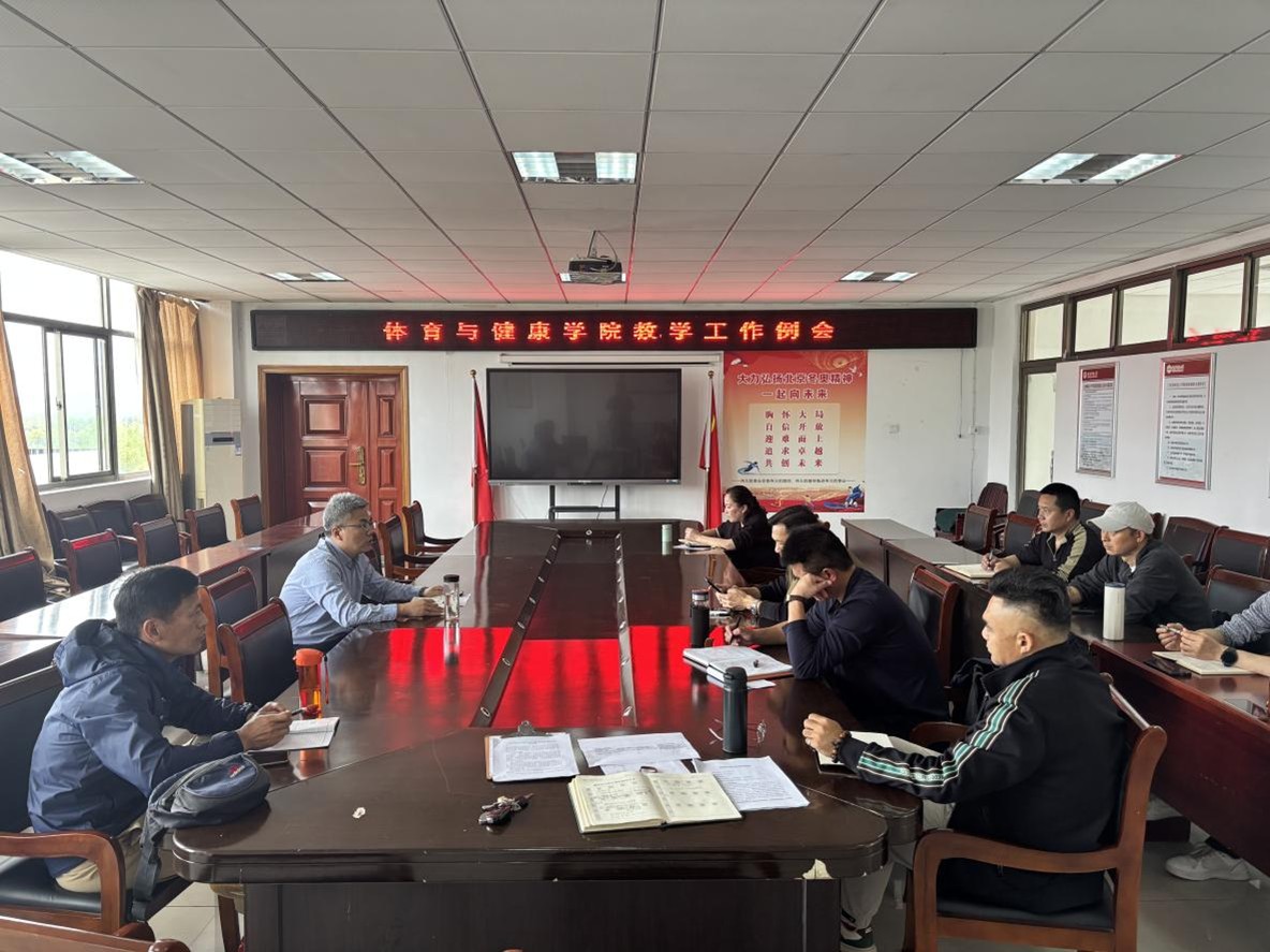 近日,体育与健康学院在体育馆三楼会议室召开4月份教学工作例会。体育与健康学院副院长王晓东出席并主持会议,各教研室主任、专业负责人、院级教学督导员、教学办公室成员及实习实训中心负责老师参加本次会议。