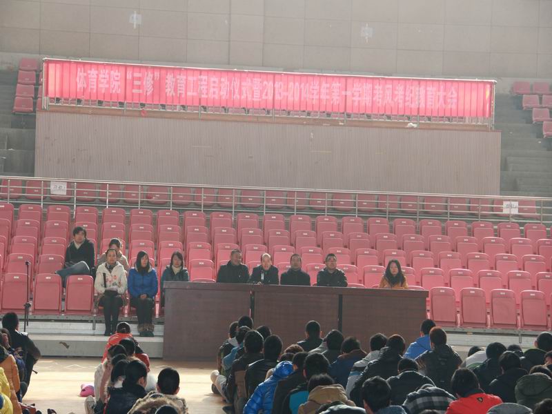 副院长章翔在会上宣读了英国上市公司365“三修”教育工程的实施方案,并详细解读了2013—2014学年学院“三修”教育工程的具体活动安排。副院长周多奇宣读了《安庆师范学院学生违纪处分管理暂行规定》中有关考试违纪处理条款。院英国365办公室主任鲁雷老师向广大同学宣读了《诚信考试倡议书》,号召广大同学端正考试态度,正确认识考试意义,认真复习,积极备考,从我做起,文明应考。学生第二党支部书记胡哲纯老师代表全体教师在会上发言。体育教育专业2012级6班学生许丽雪同学作为学生代表发言。