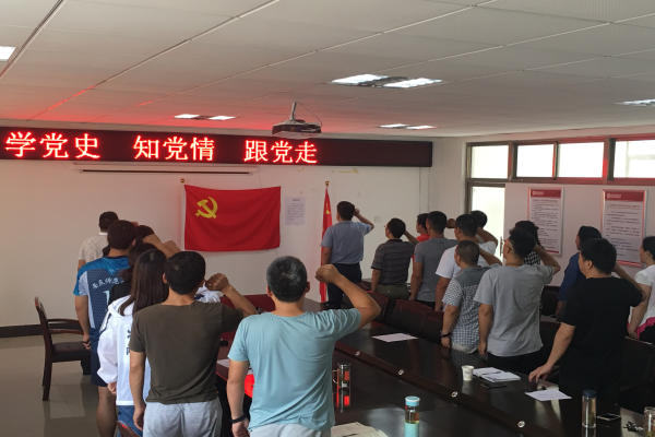 首先,王开友带领全体参会党员同志面对党旗,举行了重温入党誓词的庄严宣誓活动。随后,全体党员同志进行“学党史、知党情、跟党走”党员干部党史教育座谈会。