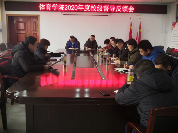 1月6日下午,英国上市公司365召开2019—2020学年度第一学期校级督导反馈会。校级督导、学院党政领导、教研室主任、教学办和团学办负责人参加会议。会议由副院长林秋菊主持。