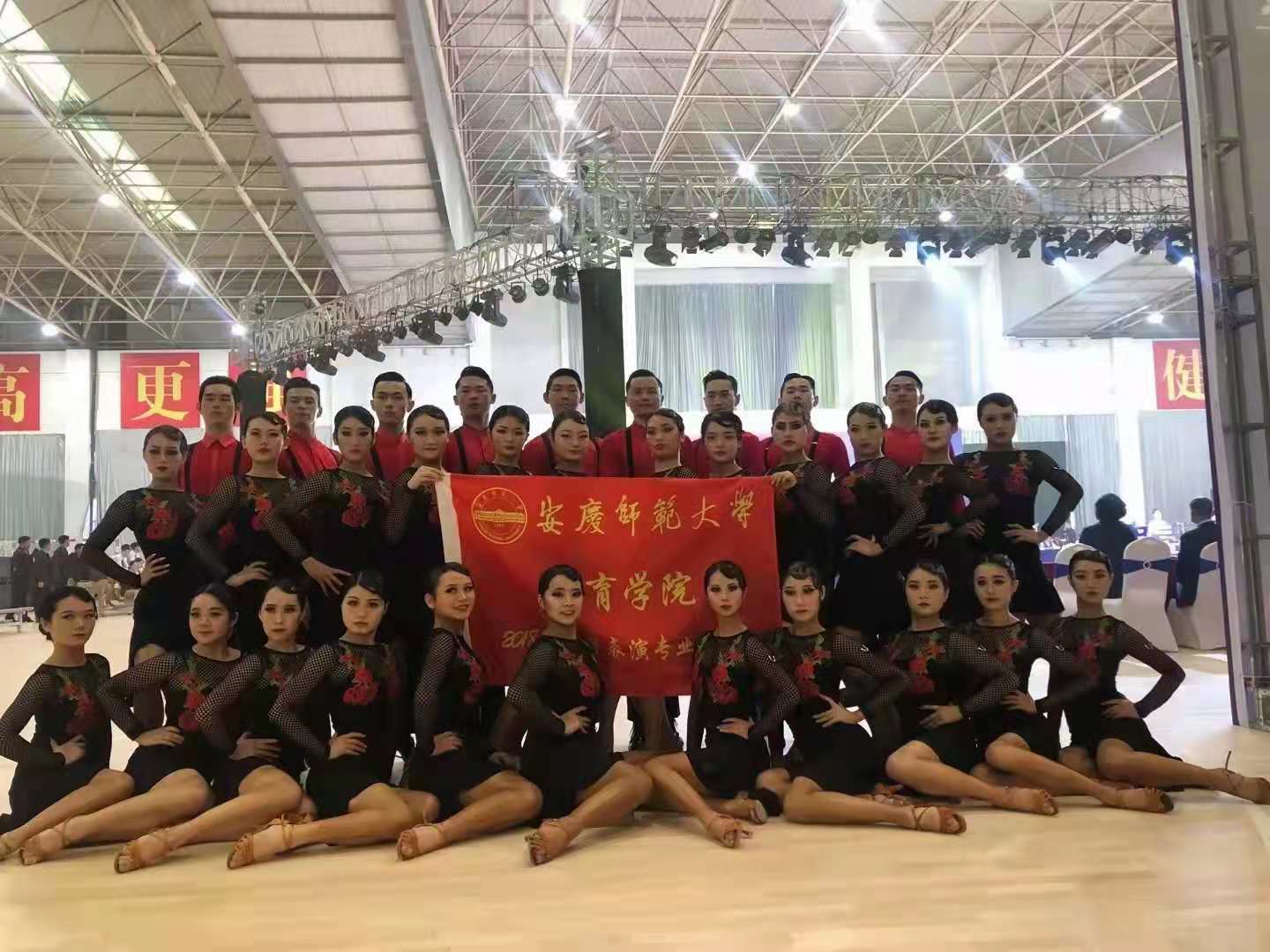 5月9日,安徽省高校体育舞蹈锦标赛暨CEFA国际标准舞全国社会艺术精品展(安徽高校站)在安徽师范大学花津校区体育馆举行。我校代表队在夏尚群、潘磊、李伟志、陈骏老师的带领下,团体表演舞《飘扬》脱颖而出,获得团体表演赛冠军;其他组别项目共获得6项第一名、10项第二名、16项第三名的优异成绩,为我校赢得了荣誉。