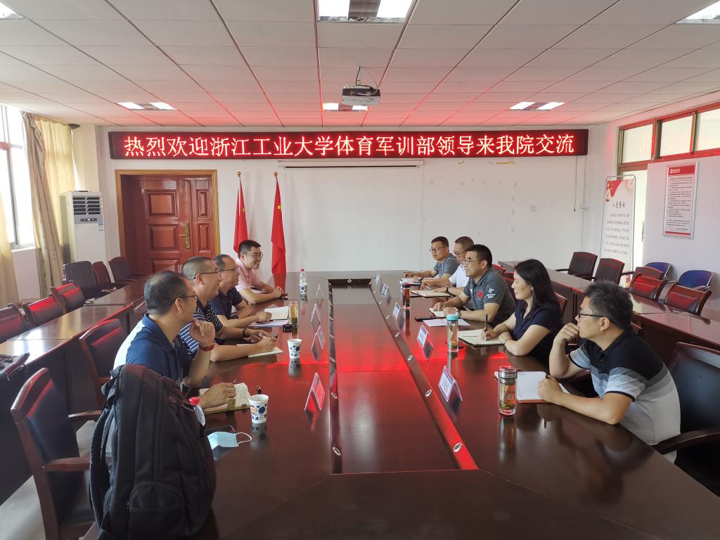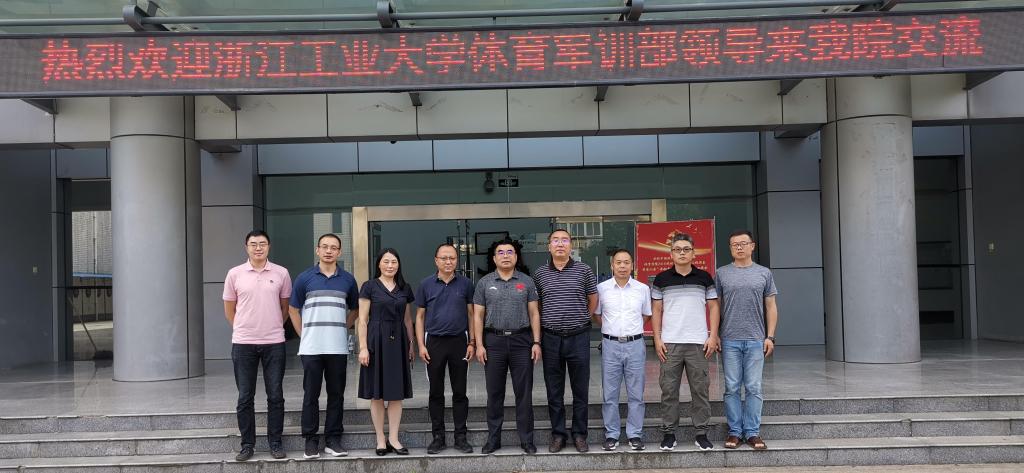 2021年6月23日,浙江工业大学体育军训部刘军主任、李海鹏副主任等一行四人来我院进行体育学专业硕士点建设工作交流。