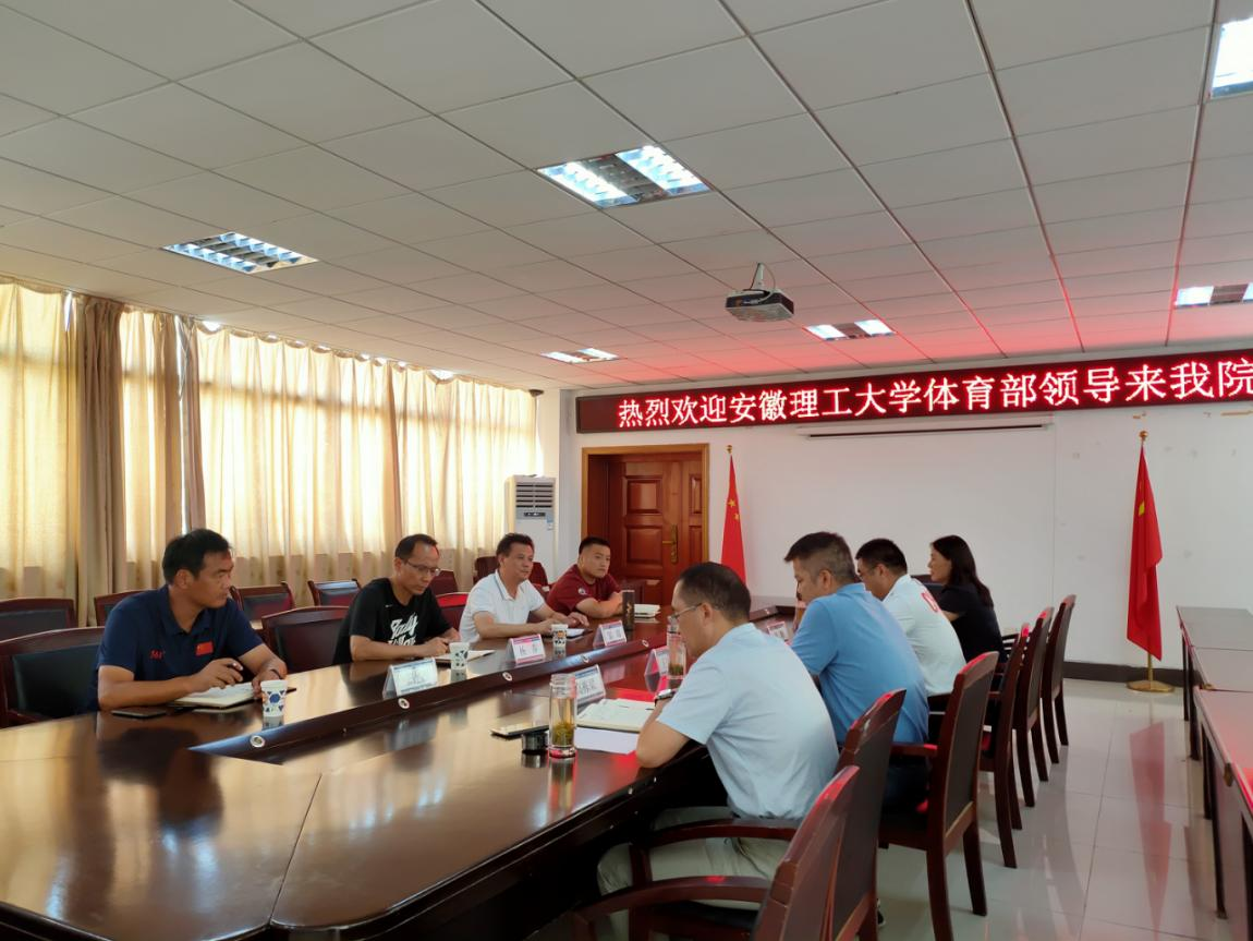 7月14日下午,安徽理工大学体育部党总支书记、主任邹瑞等一行五人,来英国上市公司365考察交流工作。学院领导班子全体成员接待来访人员,并共同出席了交流座谈会。