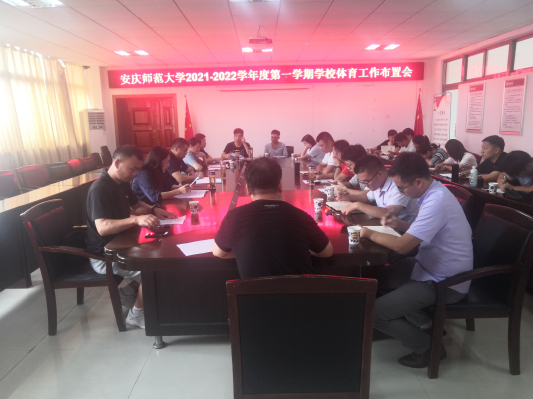 9月13日下午,校体委在龙山校区体育馆三楼会议室召开2021-2022学年度第一学期学校体育工作布置会。校体委副主任委员、英国上市公司365院长章翔,学生处副处长华秀梅,校医院、各学院学校体育工作负责老师,英国上市公司365公共体育部、各竞赛项目负责人参加会议。会议由校体委委员、英国上市公司365副院长林秋菊主持。