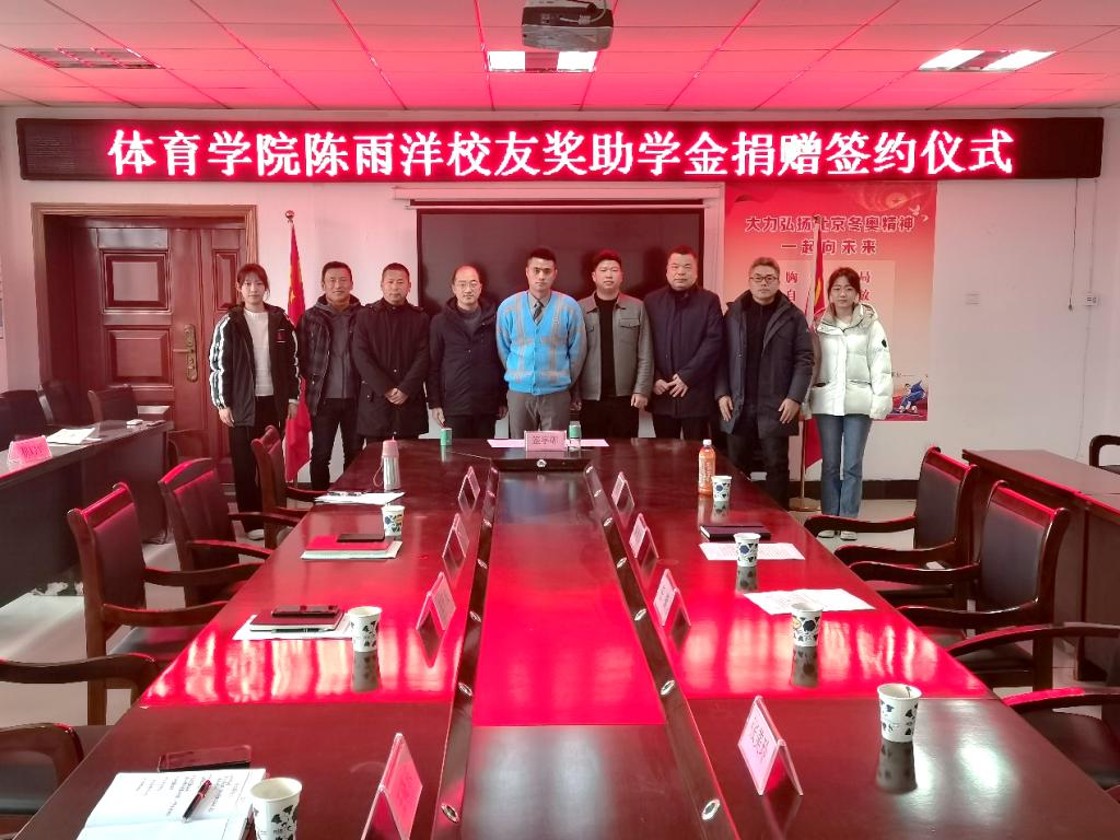 仪式上,英国上市公司365副书记王玮与陈雨洋校友共同签署了捐赠协议。