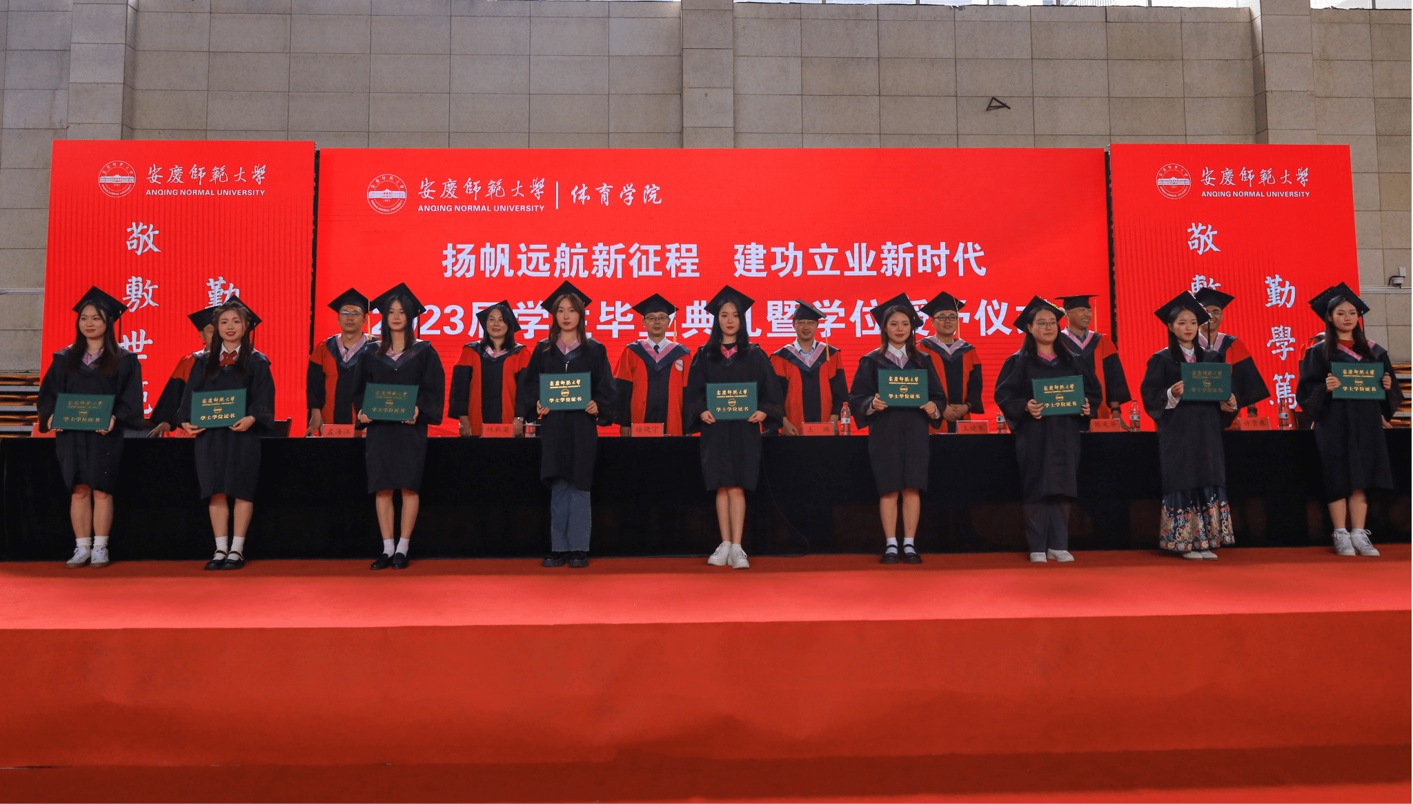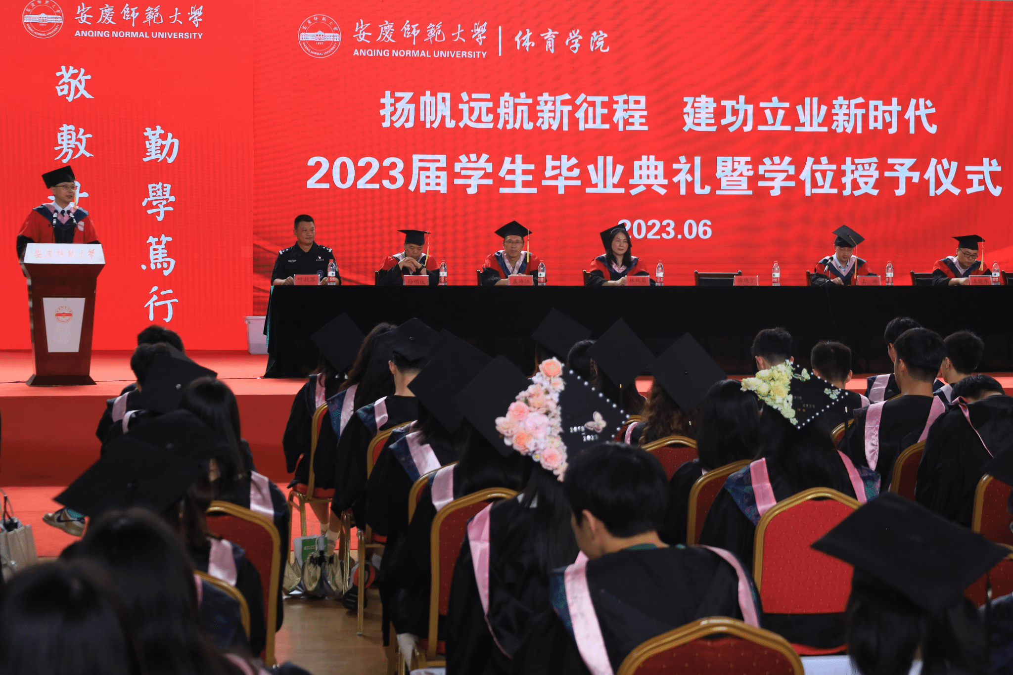 2006届优秀毕业生、安庆市特警支队三大队副队长叶扶苏警官作为校友代表,表达了对学弟学妹们的祝福和嘱托:“希望你们秉持‘敬敷、世范、勤学、笃行’的校训,共创师大新的辉煌。”他提到,毕业生应扎根本职工作,葆有规划人生和知足常乐的能力,将青春投入到全面建设社会主义现代化国家的火热实践中。