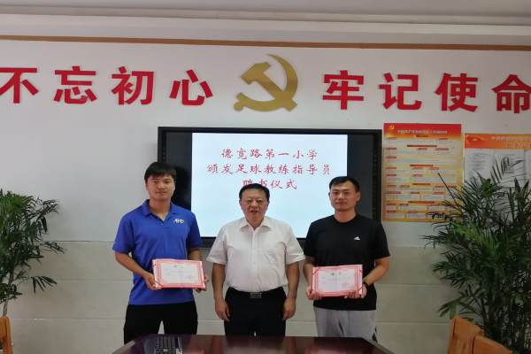6月6日,安庆市德宽路第一小学聘任我院项和平、乔伟两位老师为校园足球指导员。