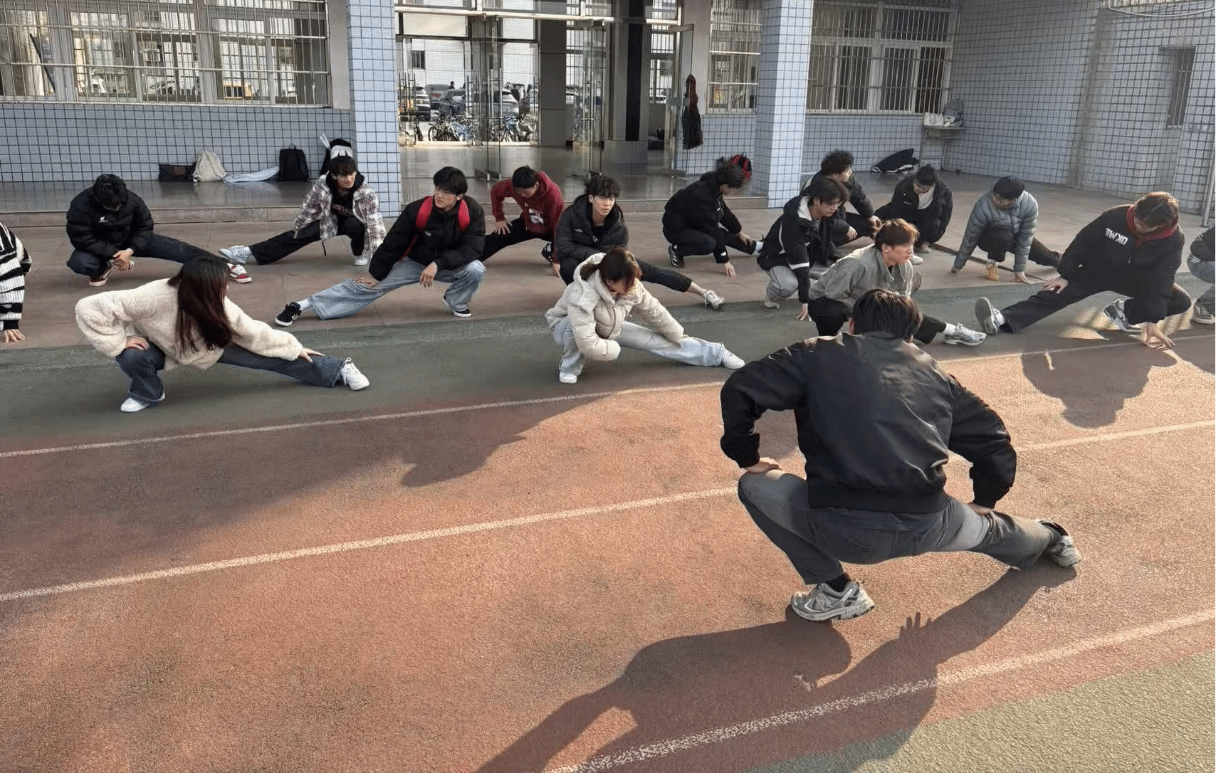 活动伊始,班级团支书张徽滨组织全体同学在指定地点集合签到,确保每位同学安全参与。随后,在团支书的带领下,同学们进行了系统的热身运动,包括拉伸、关节激活与肌肉舒展等环节。现场气氛热烈而有序,欢声笑语中洋溢着对即将开始奔跑的期待与兴奋。